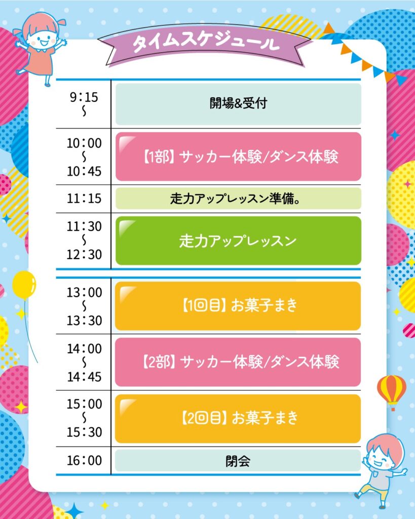 親子て楽しめるイベントとして、サッカー体験だけではなく、参加していただいたみなさんが運動を通して楽しい時間を過ごせるイベントになっています。