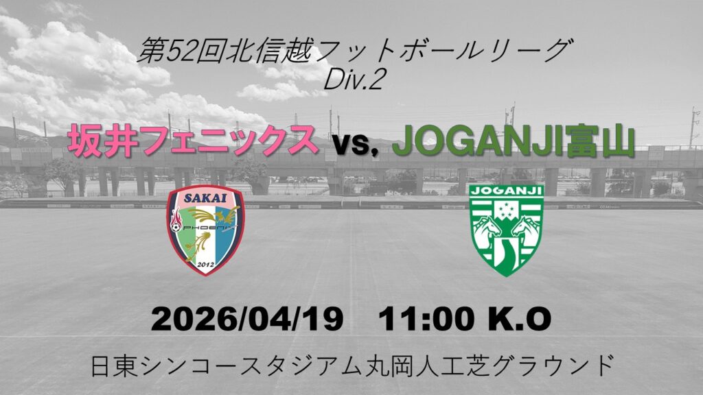 4月19日 日曜日に行われる、第52回北信越フットボールリーグDiv.2